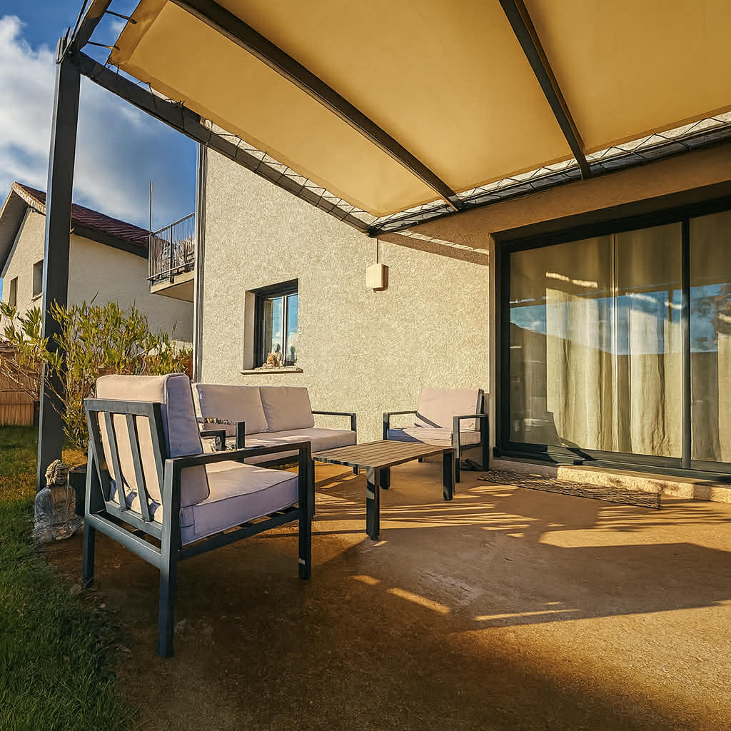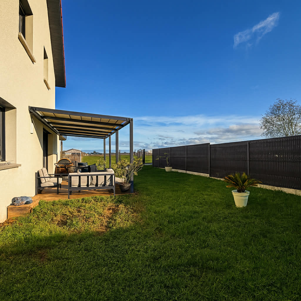 -un jardin de plus de 150 m² avec sa pergola sur mesure !