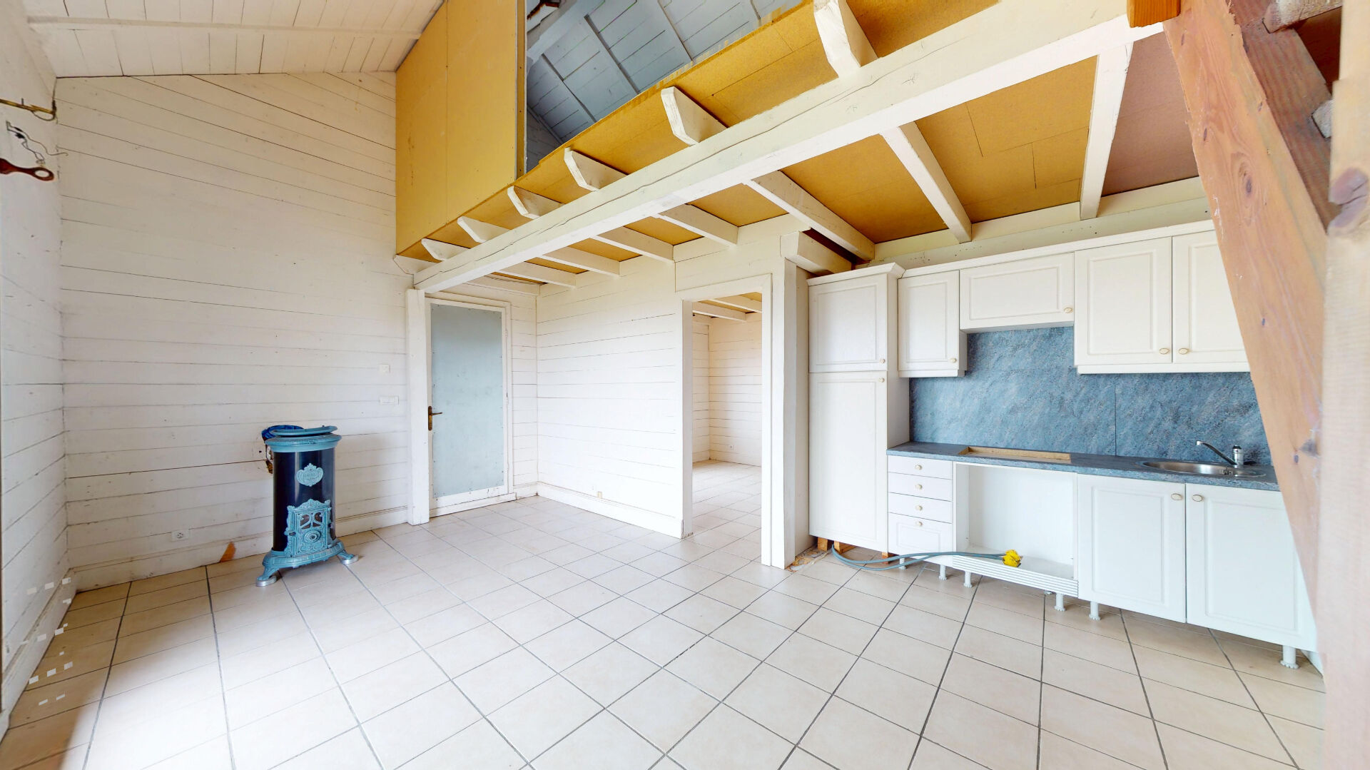 Le second chalet de 50 m2 est composé d’une pièce de vie de 22m2, une chambre, une salle d’eau avec WC, des combles aménageables et un abri à l’extérieur.