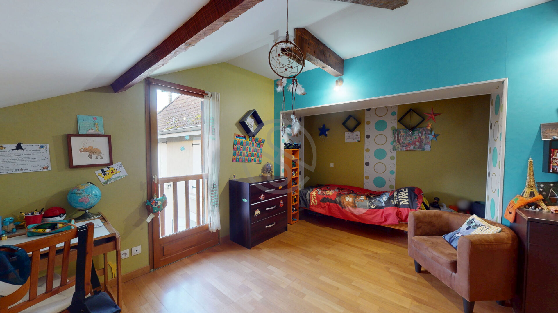 A l’étage 3 grandes chambres (de 19, 20 et 14 m2) dont 1 avec dressing, une grande salle de bain avec baignoire + douche et un WC.