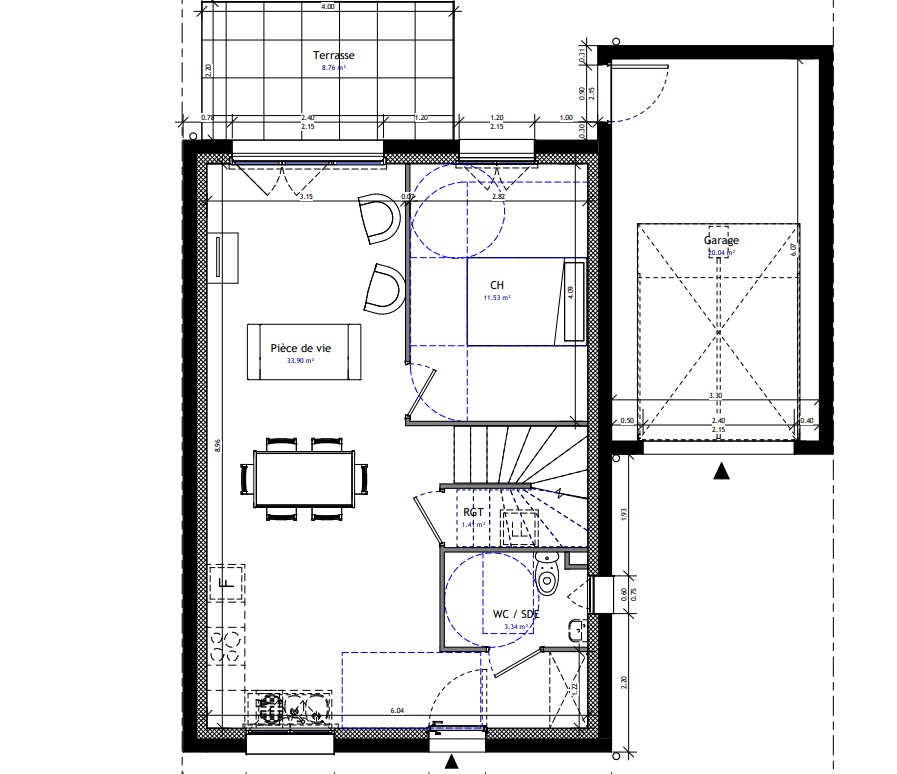 Elle possède également un garage de 20m² et une terrasse de 8.76m².