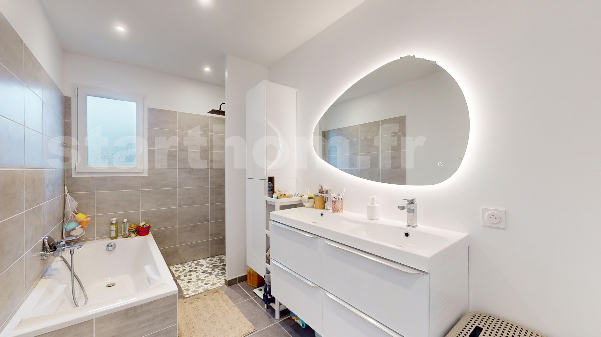 Le coin nuit vous offre 3 chambres, ainsi qu’une belle salle de bain avec douche à l’italienne , baignoire, et meuble double vasque. Construite en 2024, elle vous apportera tout le confort répondant aux normes de la RT2020.