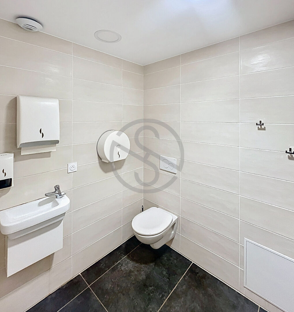 A l’intérieur, la surface de 408 m² en loi Carrez se divise en 12 pièces. Divisible en 2 magasins de vente avec entrées distinctes, une mezzanine, des bureaux, deux coins repas, de nombreux rangements, des salles de stockage. Climatisé et avec accès PMR, cet espace lumineux grâce à sa verrière est parfait pour une activité commerciale prospère, offrant