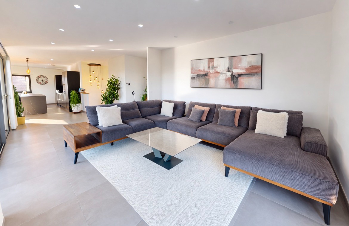 La cuisine design et sobre avec son ilot central recouverts d’un plan de travail en céramique fini d’embellir cet espace. Vous bénéficiez aussi d’un cellier , d’une suite parentale avec son dressing et sa salle d’eau privée .