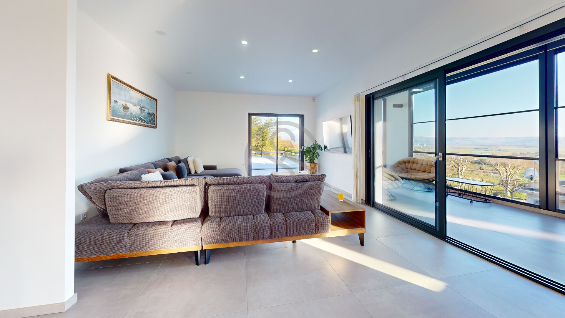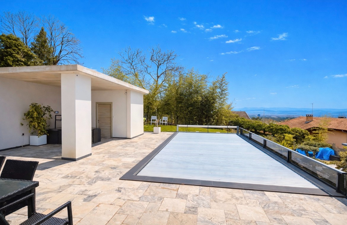 Un confortable et bel escalier vous permet d’accéder au 1 étage.Sur ce niveau, vous découvrez une magnifique pièce de vie , lumineuse tournée vers les montagnes avec son accès piscine et une splendide et surprenante véranda transformable.