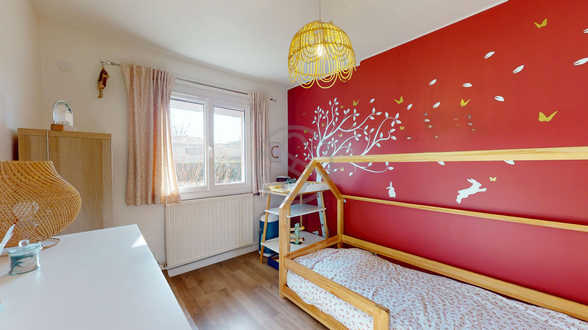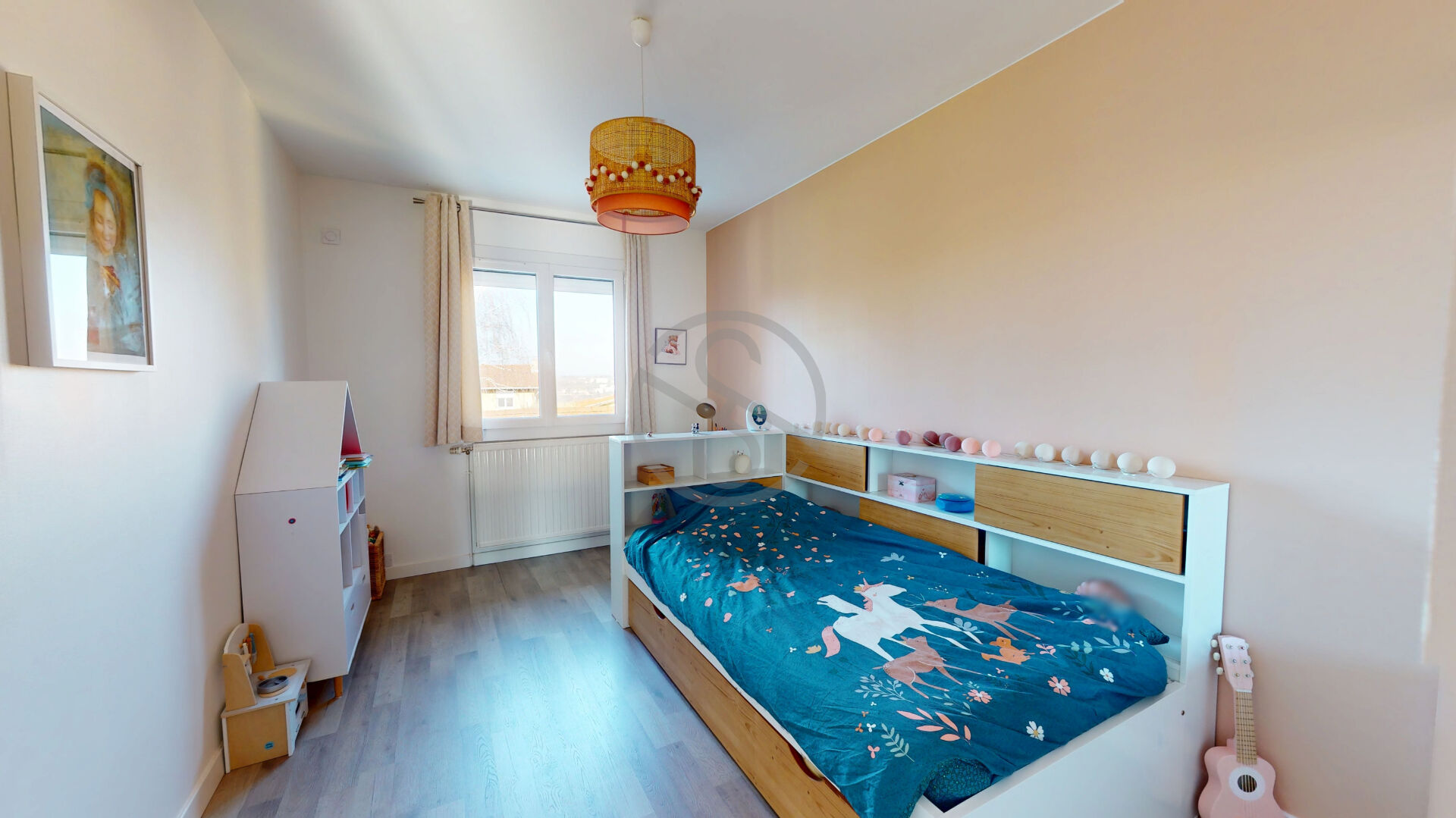 Quelques marches plus haut, l’espace nuit vous offre 3 belles chambres, un WC et une salle de bain.