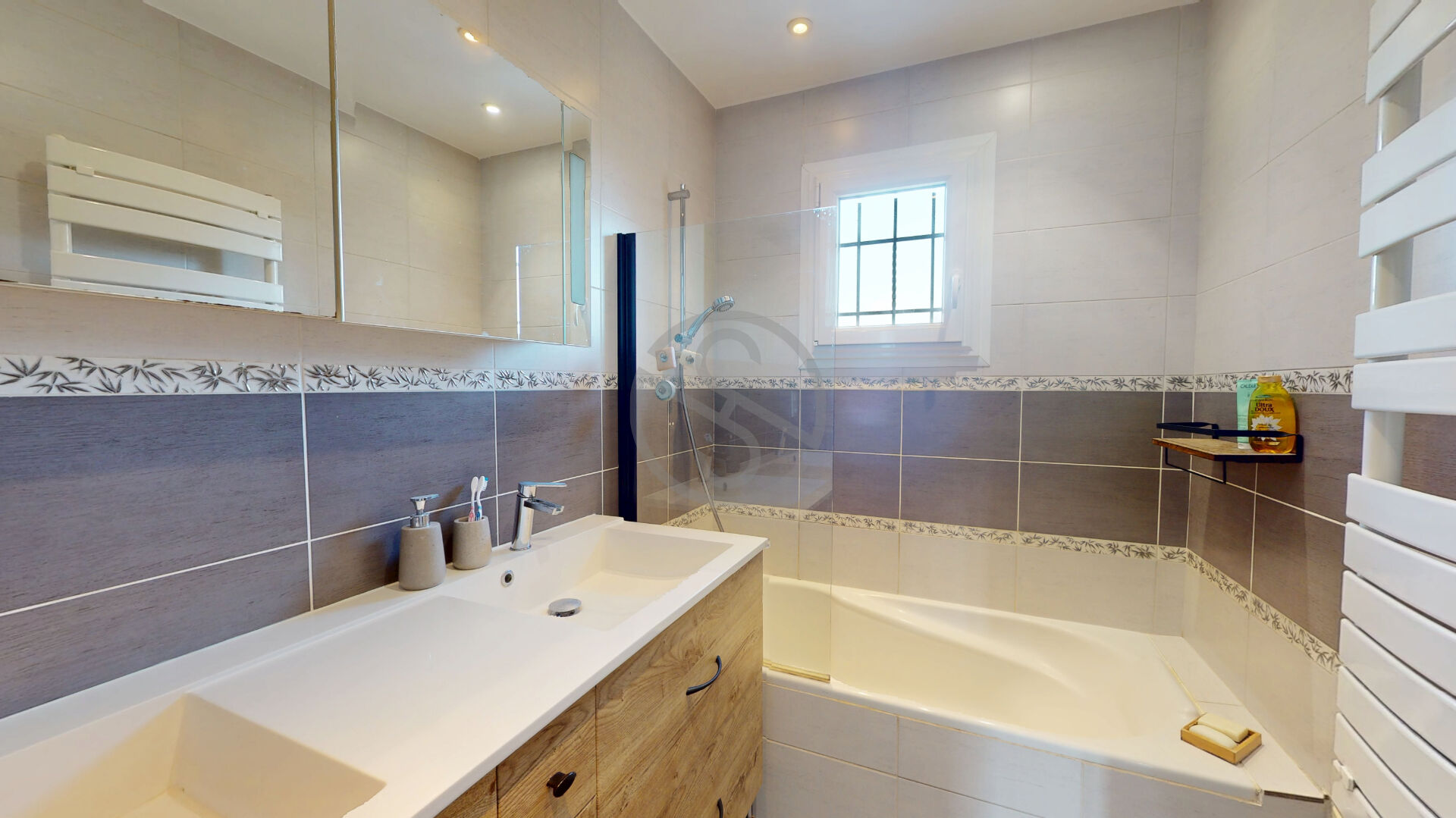 Et en demi-niveau bas, ce sont 45m² supplémentaires, comprenant une 4ème chambre, une grande buanderie avec coin salle d’eau et WC neuve, une cave à vin, et une pièce annexe pouvant être organisée selon vos souhaits : salle de sport, salle de jeux etc…
